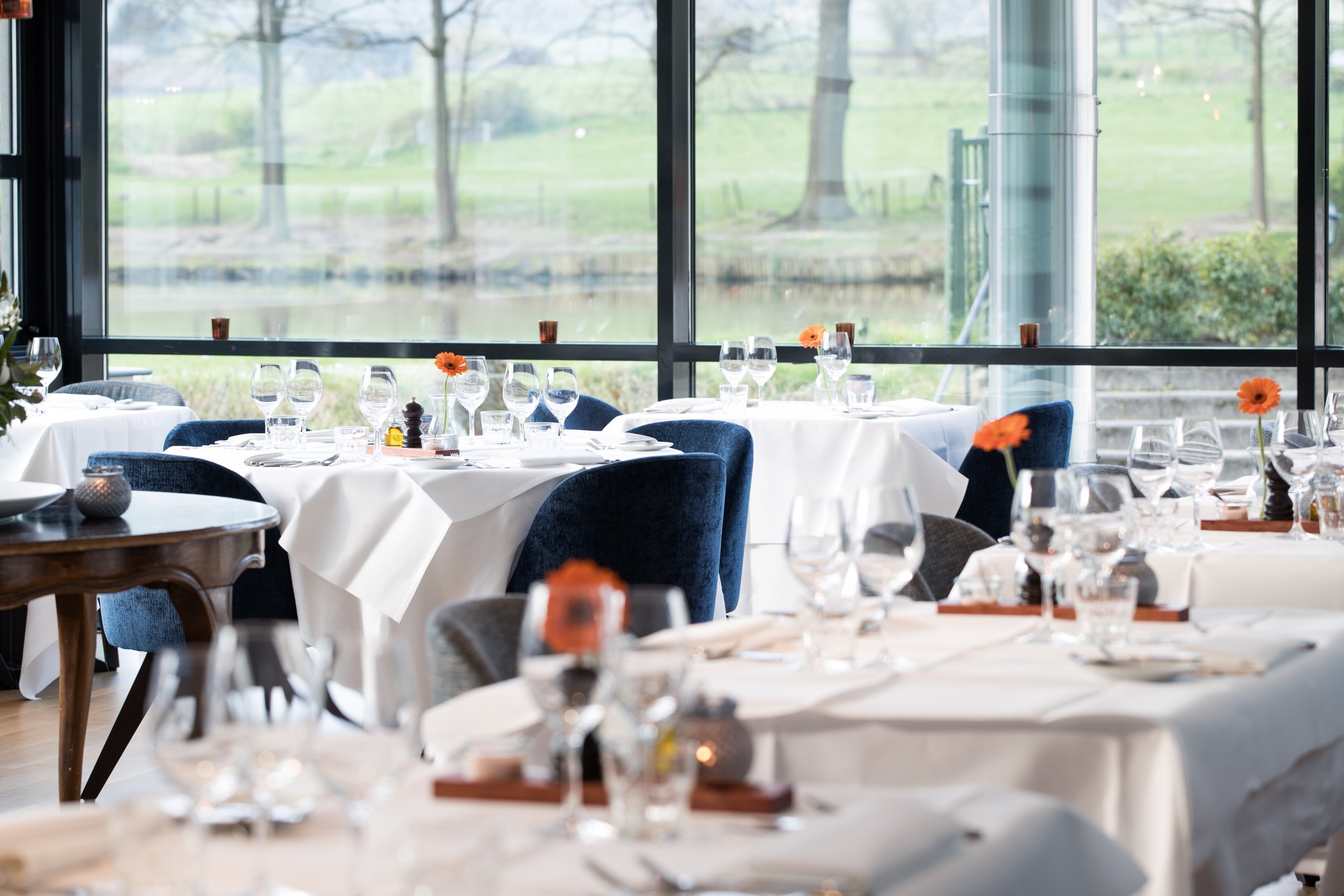 De wijnen van de omliggende domeinen staan op de wijnkaart van het restaurant — zodat je de wijngaard van overdag ’s avonds terugproeft in je glas. Een dagje wijnproeven in Zuid-Limburg eindigt nergens zo mooi als hier.